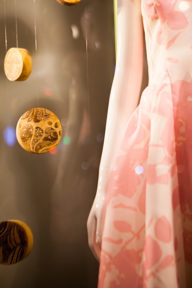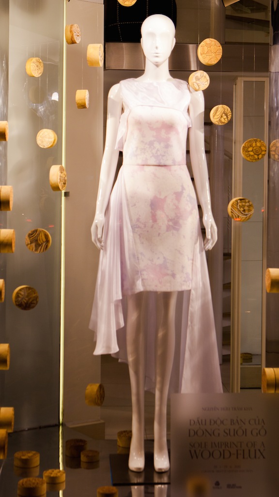 Dòng suối gỗ – một dòng chảy gỗ – dường như là một cách nói mâu thuẫn, bởi làm sao một thứ cứng chắc như gỗ lại có thể chảy xiết thành dòng. Quả thực, khái niệm này khiến ta gợi nhớ đến nghệ thuật in khắc gỗ trên lụa và giấy của Nhật Bản – ‘Ukiyo-e’ – dịch ra nghĩa là ‘bức họa của thế giới đang trôi’. Lấy cảm hứng từ phẩm chất ‘Ukiyo-e’ và họa tiết in vải trong bộ sưu tập Xuân/Hè 2015 của PHUONG MY, nghệ sĩ Nguyễn Hữu Trâm Kha trưng bày những quyến rũ của ‘Dòng suối gỗ’.